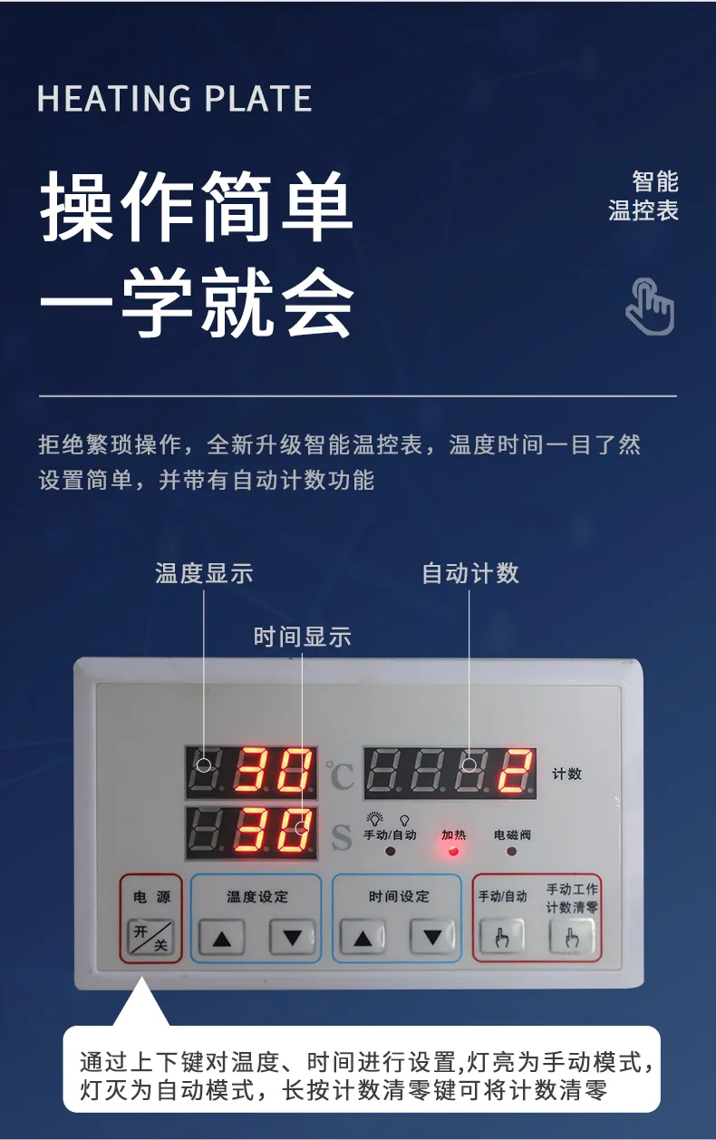 1、數(shù)顯儀表,觸摸按鈕,電(diàn)磁✘• 開(kāi)關技(jì)術(shù),通(tōng)斷計(jì)時(shí)器♠π≠₹(qì),美(měi)觀,準确性高(gāo);