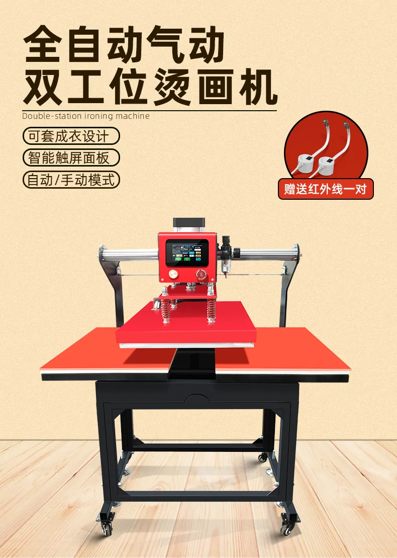 全自(zì)動氣動雙工(gōng)位燙畫(huà)機(jī)(可'(kě)套成衣)JC-7C-1
