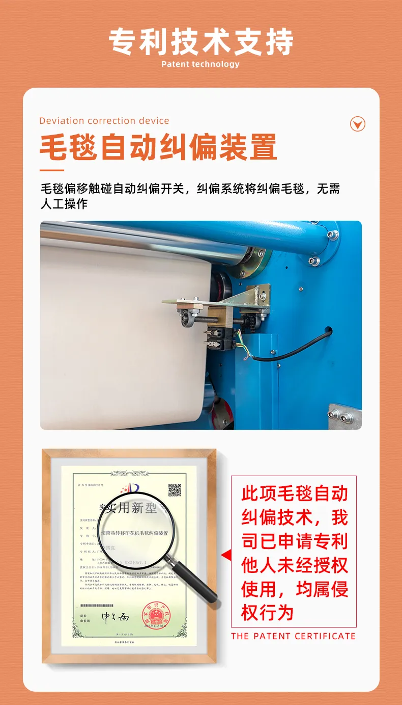 1、毛毯自(zì)動糾偏(我司專利技(jì)術(shù)):智能(né&↔ng)防止毛毯跑偏、變形。損壞;