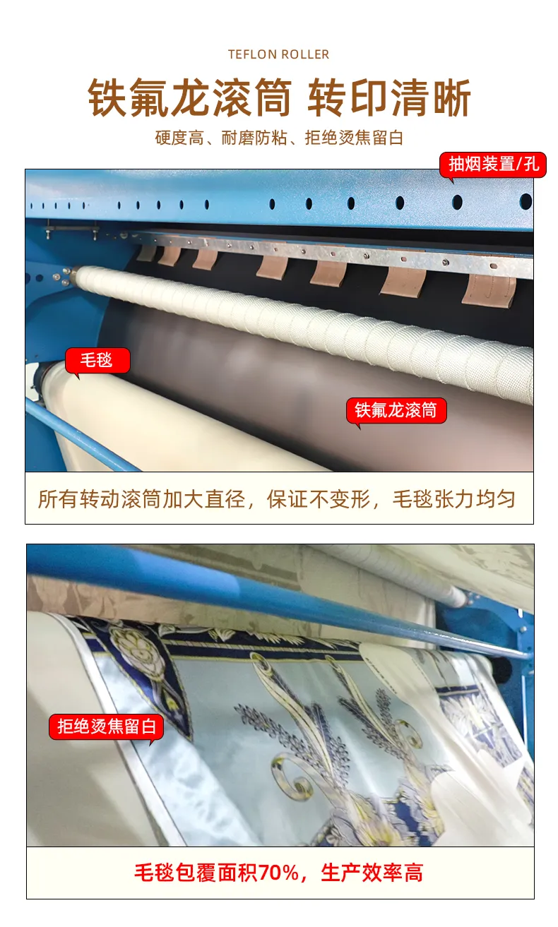 4、毛毯包裹滾筒面積達70%:溫區(qū)長(chεδ↕áng),速度快(kuài),滾筒熱(rè)損耗小(xi♦₹ǎo),相(xiàng)對(duì)标準版∞α(毛毯50%包裹面積)省電(diàn)20%;