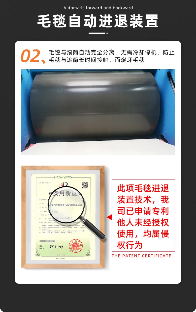 1、采用(yòng)先進技(jì)術(shù),無需冷(lěngπ×)卻,毛毯與滾筒可(kě)單獨分(fēn)離(lí),具有(yǒu)停®∏¶電(diàn)保護功能(néng);