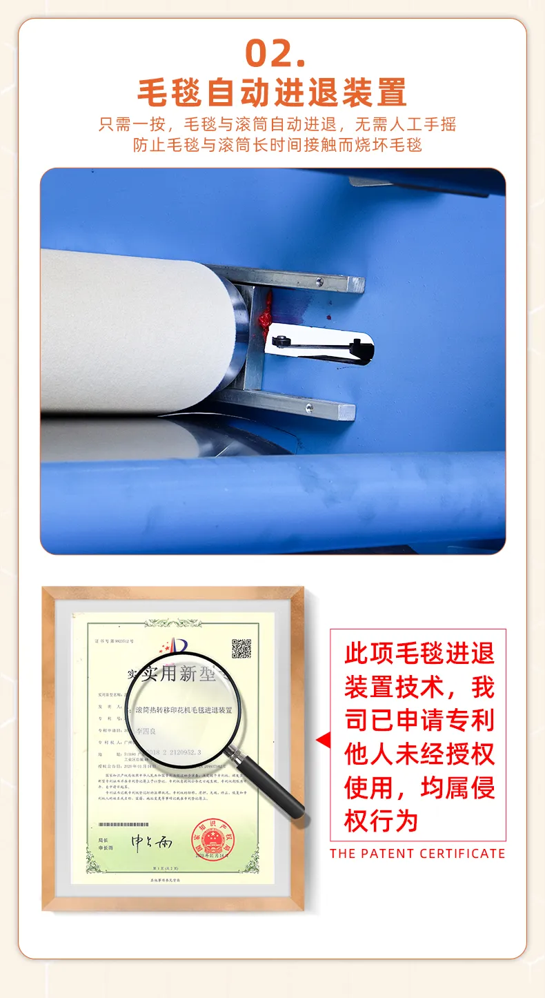 2、采用(yòng)合資生(shēng)産的(de)美(měi)€§國(guó)杜邦高(gāo)溫材料制(zhì)成毛毯,經久耐用(yòn♦✘g),轉移效果好(hǎo);