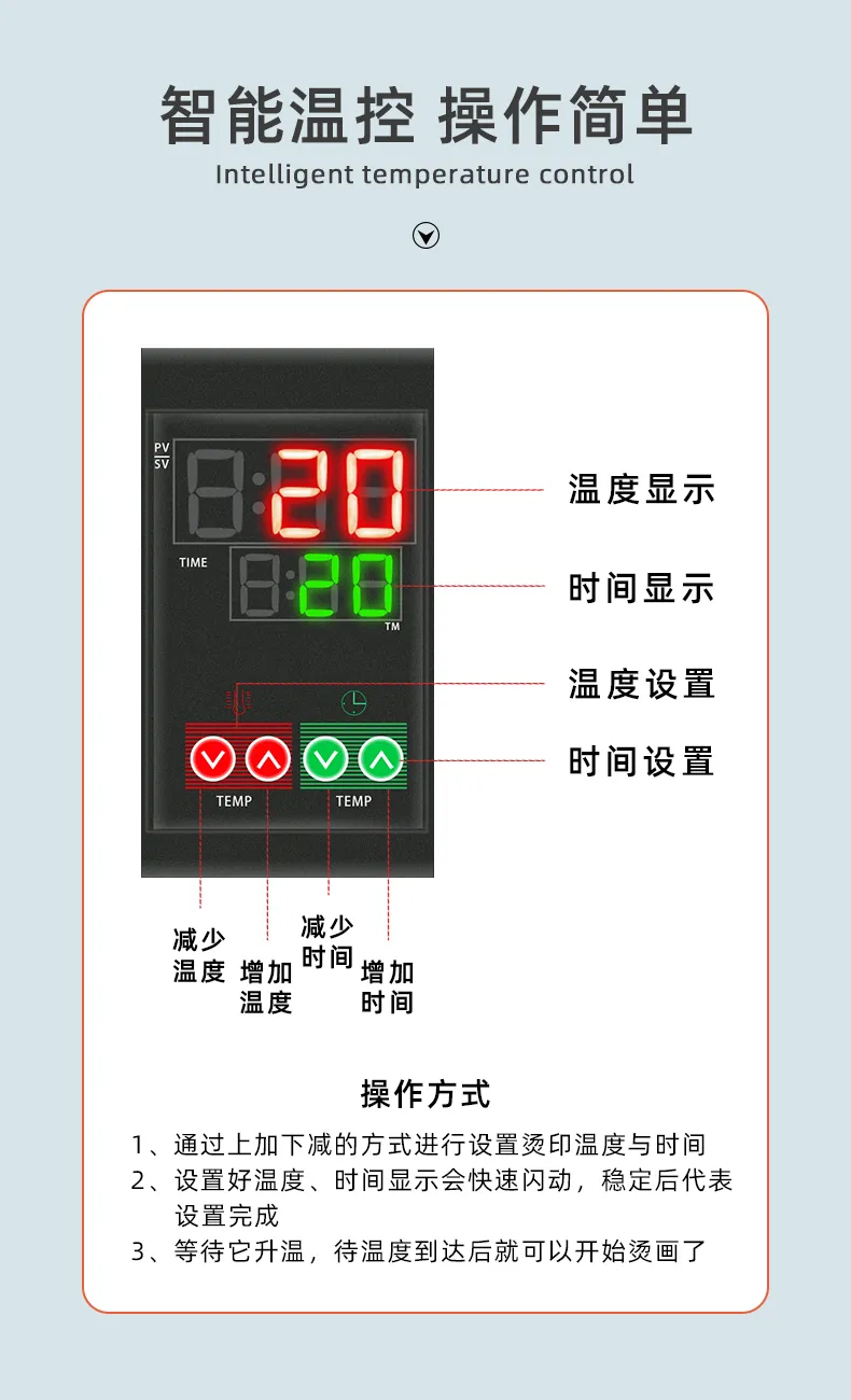 1、智能(néng)儀表,溫度、時(shí)間(j$∑iān)直觀顯示,穩定、美(měi)觀,操作(zuò)便>π☆捷;